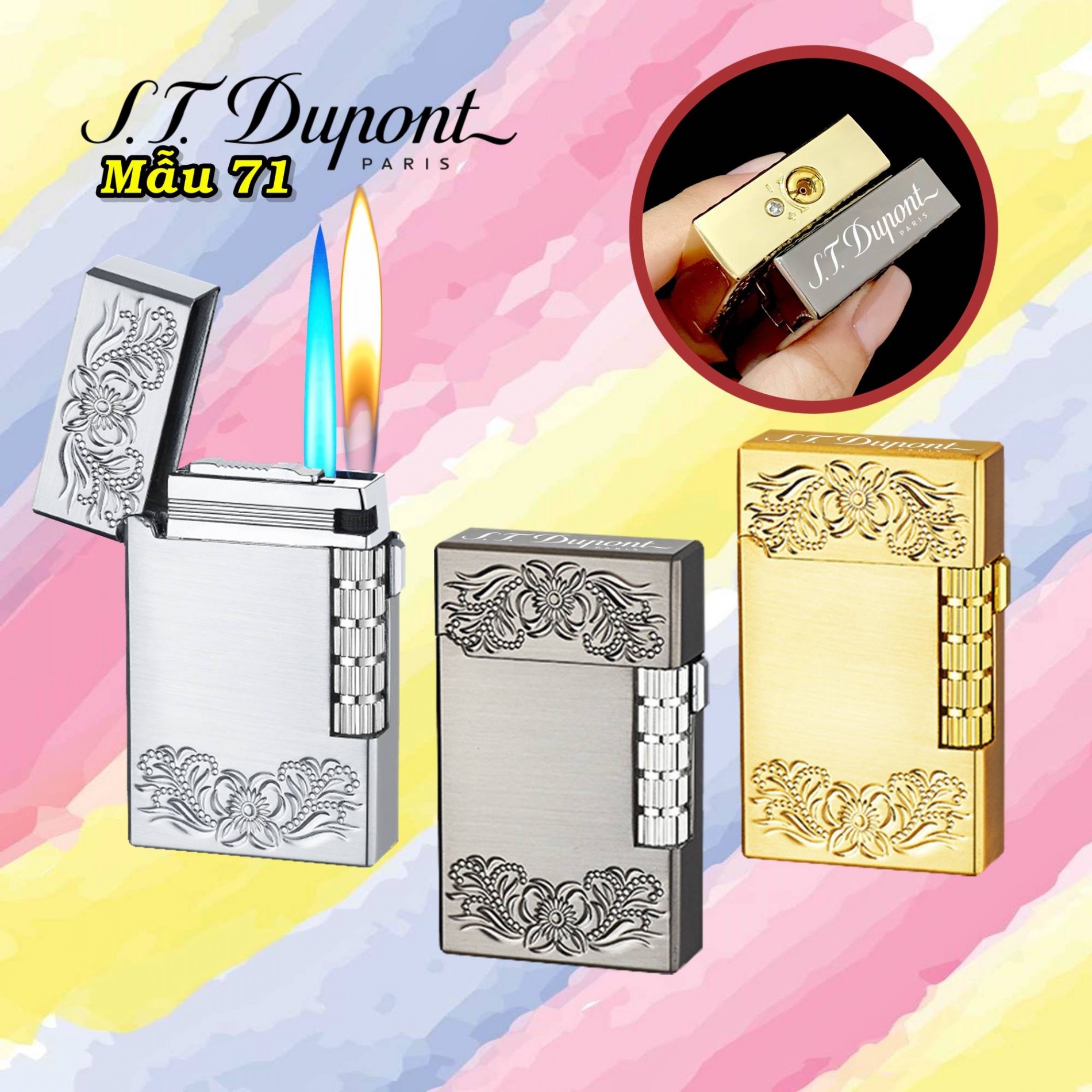 Chào mừng quý khách đến với thế giới của sự sang trọng và tinh tế! Hôm nay, chúng tôi xin giới thiệu một siêu phẩm làm mưa làm gió trên thị trường – Bật lửa Dupont 2 chế độ lửa hình hoa văn M71. Đây không chỉ là một vật dụng tạo lửa đơn thuần, mà còn là biểu tượng của phong cách, đẳng cấp và sự khéo léo trong từng chi tiết.