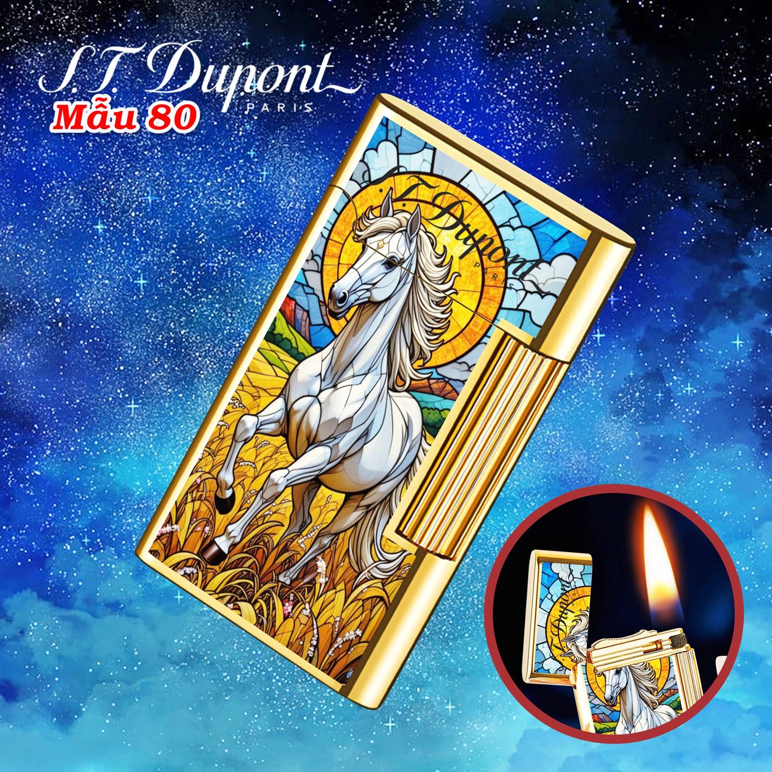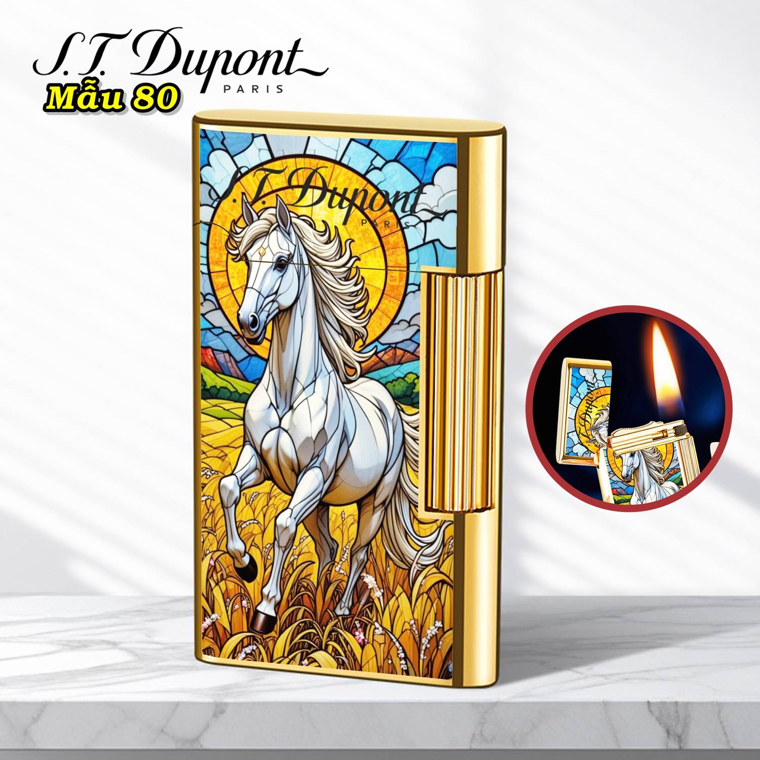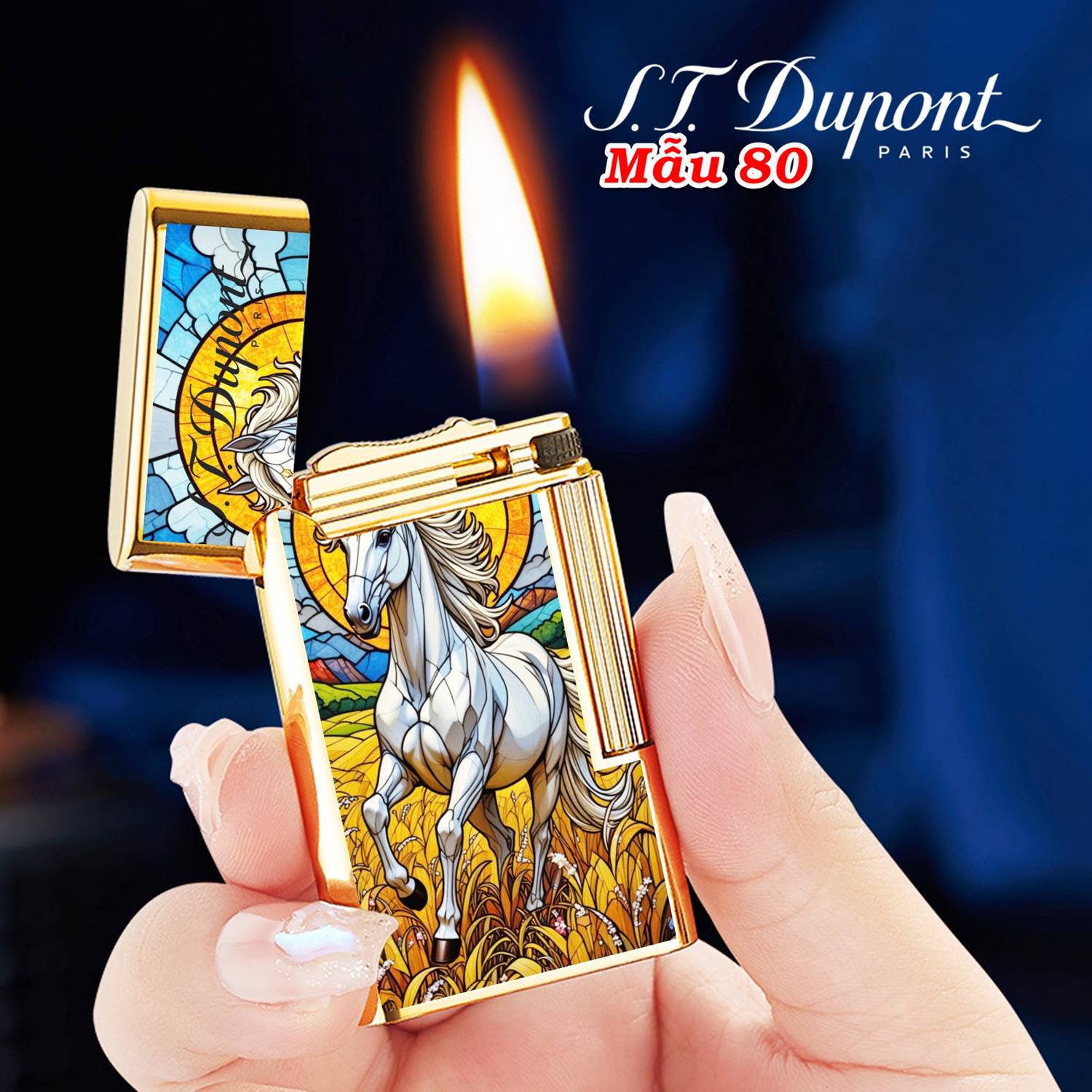 Bật lửa Dupont hình ngựa phi M-80 xài xăng