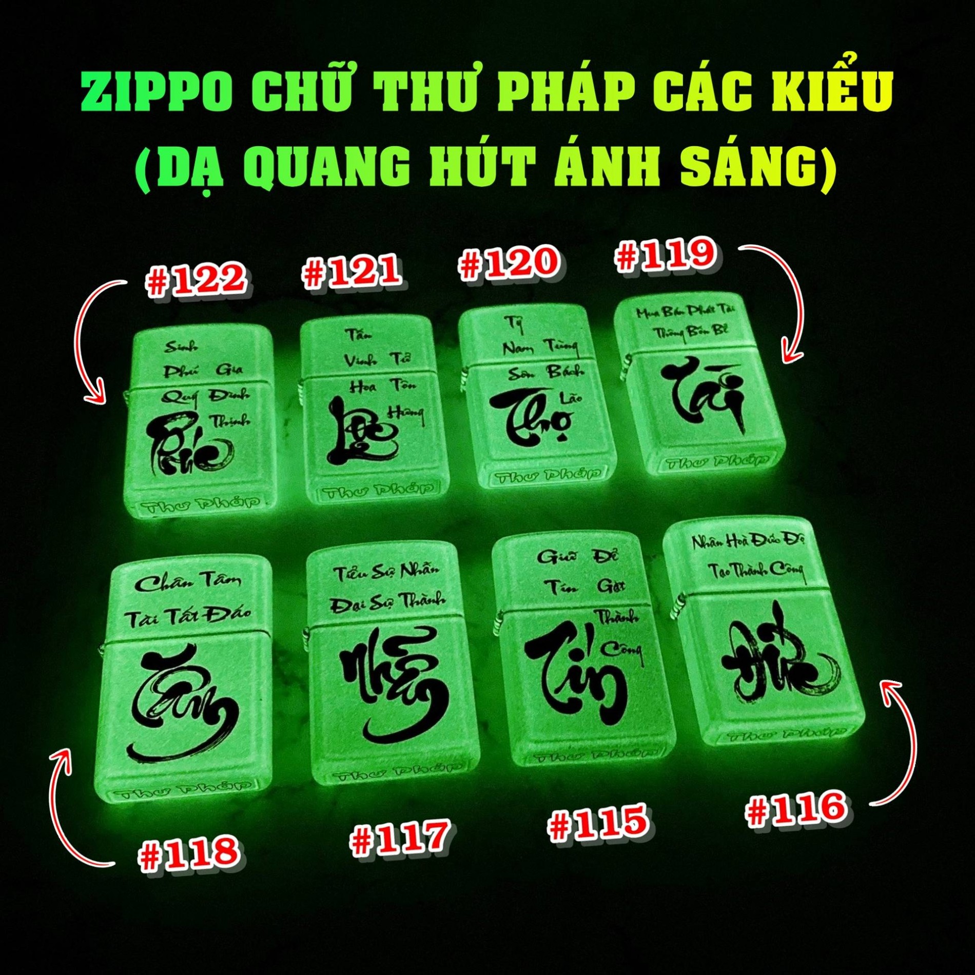 Sở Hữu May Mắn: Khám Phá Bộ 4 Bật Lửa Zippo Chữ Thư Pháp Phúc Lộc Thọ Tài Độc Đáo